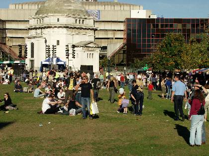 People relax on grass by Hall of Memory during Artsfest 2003