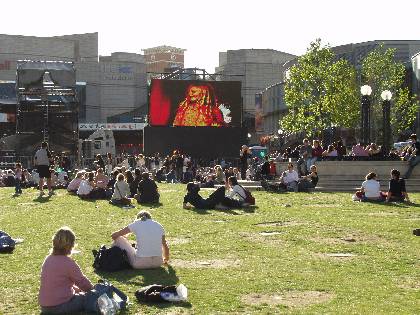 Crowds watch big screen in Centenary Square during Artsfest 2003