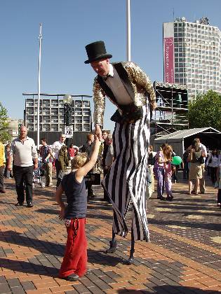 Stilt walker in Centenary Square Artsfest 2003
