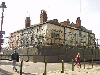 Inge Street back to backs encased in scaffold