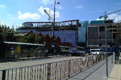 General view of temporary bus stops in front of Moor St Station looking SW