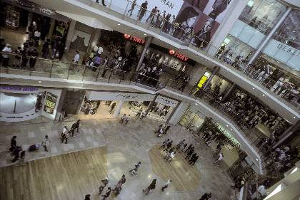 Description: Interior shopping concourse in Bullring looking down from upper floor