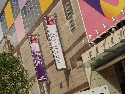 Description: Colourfull signage and banners on Pavilion shopping centre building