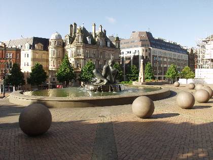 Fountain in front of Council House Victoria Square, general view early morn
